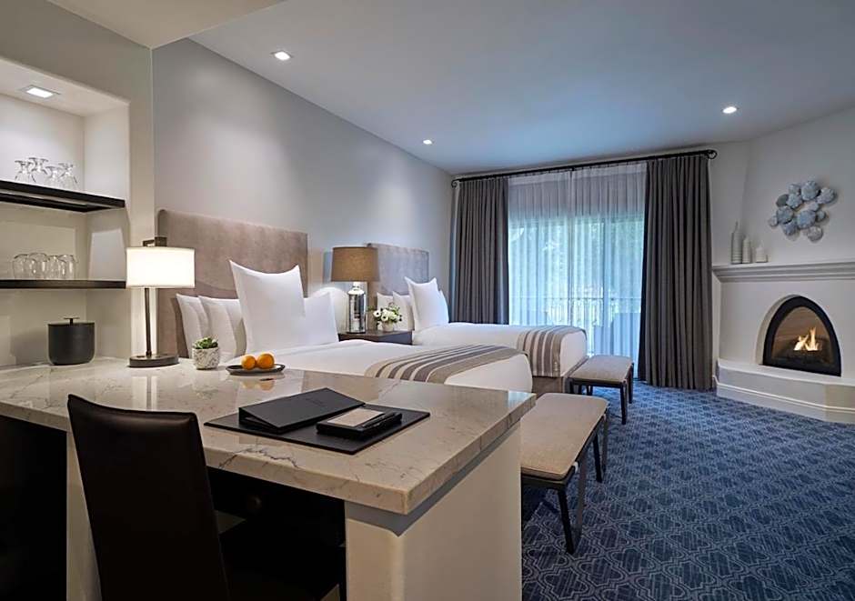 This room features a fireplace and a patio or balcony with resort views.